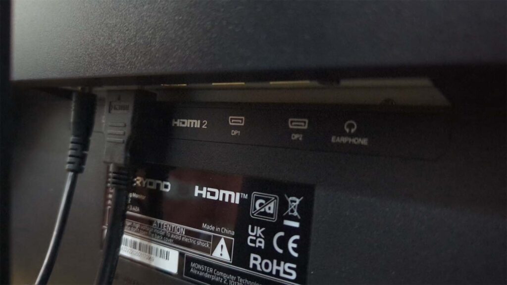 Tasarımın en dikkat çekici unsurlarından biri de ayak yapısı. Monster, oyuncu monitörlerinde görmeye alıştığımız “sivri ayak” tasarımını bu modelde de sürdürüyor. Metal ve saÄŸlam yapılı bu ayaklar, monitörün masaya mıh gibi çakılmasını saÄŸlıyor. Ancak ayakların sivri uçları masanın dışına taÅŸarsa takılma riski yaratabilir. Bu yüzden masanızın derinliÄŸini bu monitöre göre ayarlamanız kritik bir önem taşıyor.