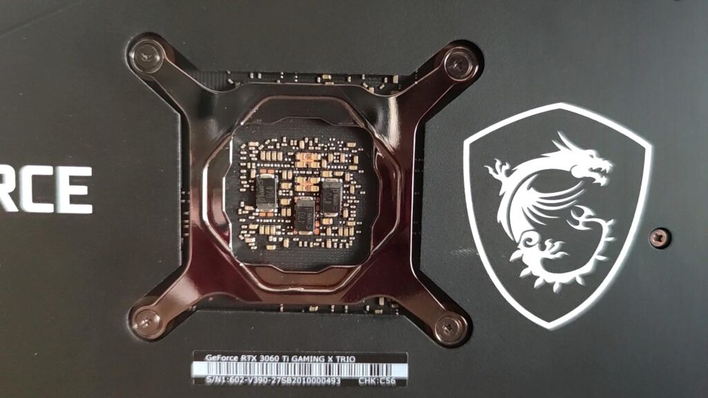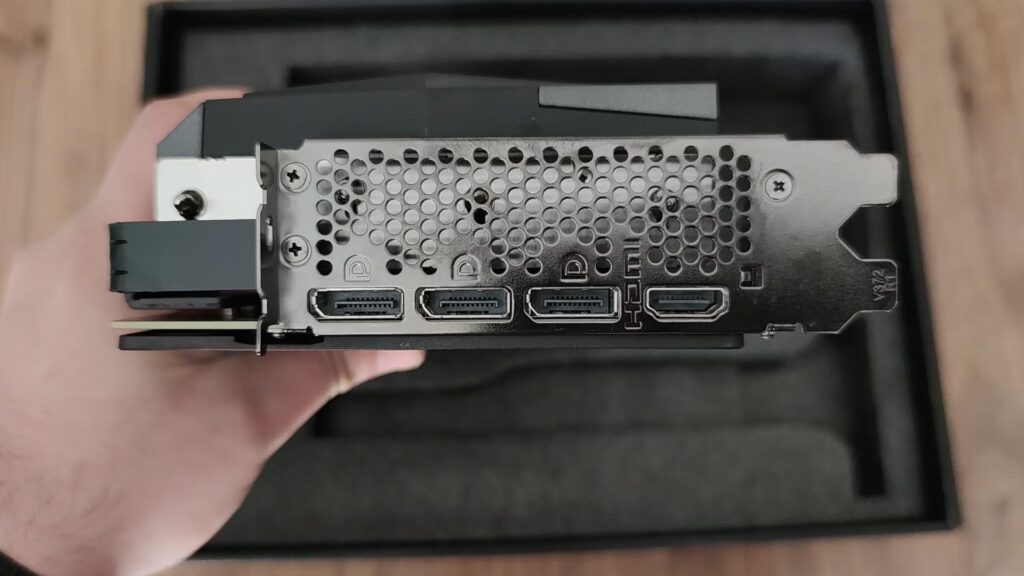 Soğutucu konusunda MSI’ın Gaming X Trio modellerinde gördüğümüz bir soğutucu kullanılmış. Elbette aynı soğutucu kullanılıyor olması kötü bir şey değil. Kart, eksenel kanatlı üç muazzam TORX 4.0 fanı içeriyor ve pasif olarak kartı 55 derecenin altında tutmak için tasarlanmış. Bir hayli fazla radyatör kullanılmış. Bu yüzden daha önce de dediğim gibi kart 2.5 slot kalınlığında. Fan yapraklarının şekli hibrit eksenel tasarıma sahip. Fanlara bakıldığında her iki bıçakta bir dış kenar görülüyor. Bu da onları çiftlere dönüştürüyor. Bu garip görünümlü bir tasarım olsa da kartın daha soğuk ve sessiz kalmasına yardımcı oluyor. Kartın arka tarafında PCB için daha da fazla soğutma sağlayan tam boyutlu siyah bir metal plaka yer alıyor. Kapasitörlerin bulunduğu kısım açık bırakılmış. Bu şekilde bugünlerde trend olan kapasitörleri buradan görebilirsiniz. MSI RTX 3060 Ti Gaming X Trio üzerinde 3 adet DP ve 1 adet HDMI 2.1 çıkışı bulunuyor.