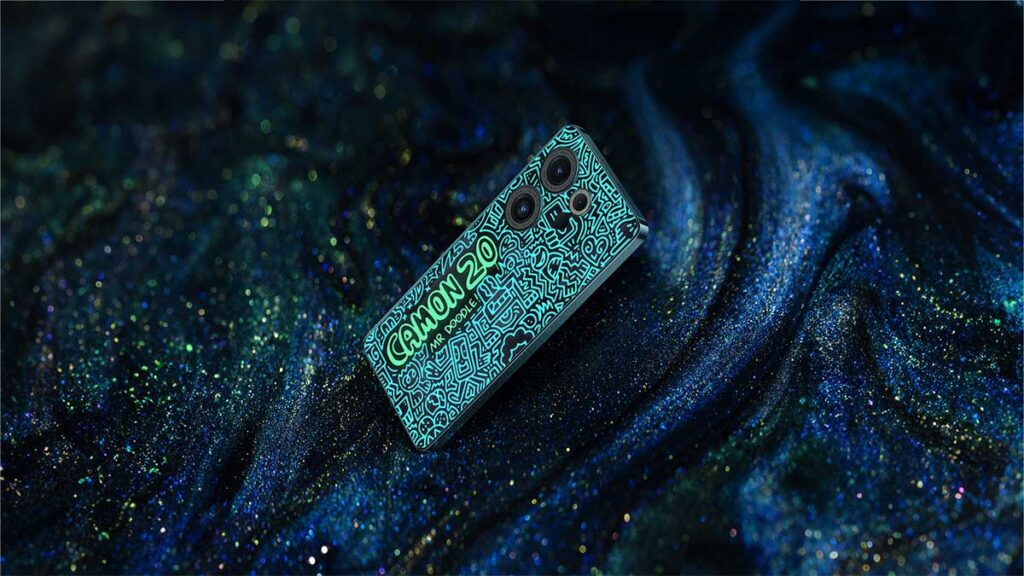 TECNO CAMON 20 Premier 5G ve TECNO CAMON 20 Pro 5G modelleri için Gökyüzü Siyahı ve Huzur mavisi, TECNO CAMON 20 Pro ve TECNO CAMON 20 modelleri için Şafak Öncesi Siyahı, Huzur Mavisi ve Buzul Parıltısı olmak üzere her modunuzu yansıtabilecek birçok renk seçeneği sunuyor ve tabii ki Mr. Doodle’ı unutmamak gerek!