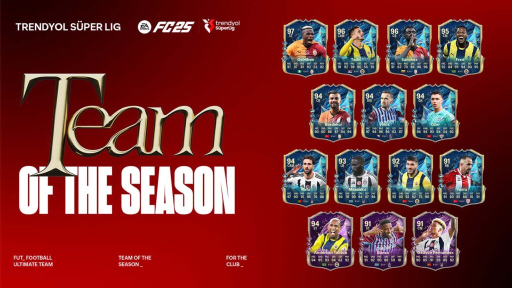 9 Mayıs Cuma günü EA SPORTS FC Trendyol Süper Lig Sezonun Takımı’nın (Team of the Season – TOTS) yayınlanmasıyla birlikte futbol fanatikleri, ünlü futbolcuları kadrolarına dahil etme imkanına kavuştular.