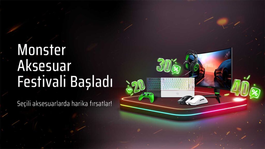 Monster Aksesuar Festivali, sınırlı süreli bir kampanya kapsamında, seçili Monster ekipmanlarında büyük indirimler sunuyor. Özellikle oyun performansını artırmak ve iş akışını daha verimli hale getirmek isteyen kullanıcılar için bu kampanya, kaçırılmayacak bir alışveriş fırsatı yaratıyor.