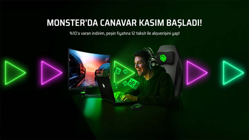Teknoloji ve oyun tutkunlarının her yıl merakla beklediği Kasım indirimleri resmen başladı. Monster Bilgisayar, “Canavar Kasım” adını verdiği kampanya ile yeni bir laptop almak veya mevcut donanımını güçlendirmek isteyenler için kaçırılmayacak fırsatlar sunuyor.