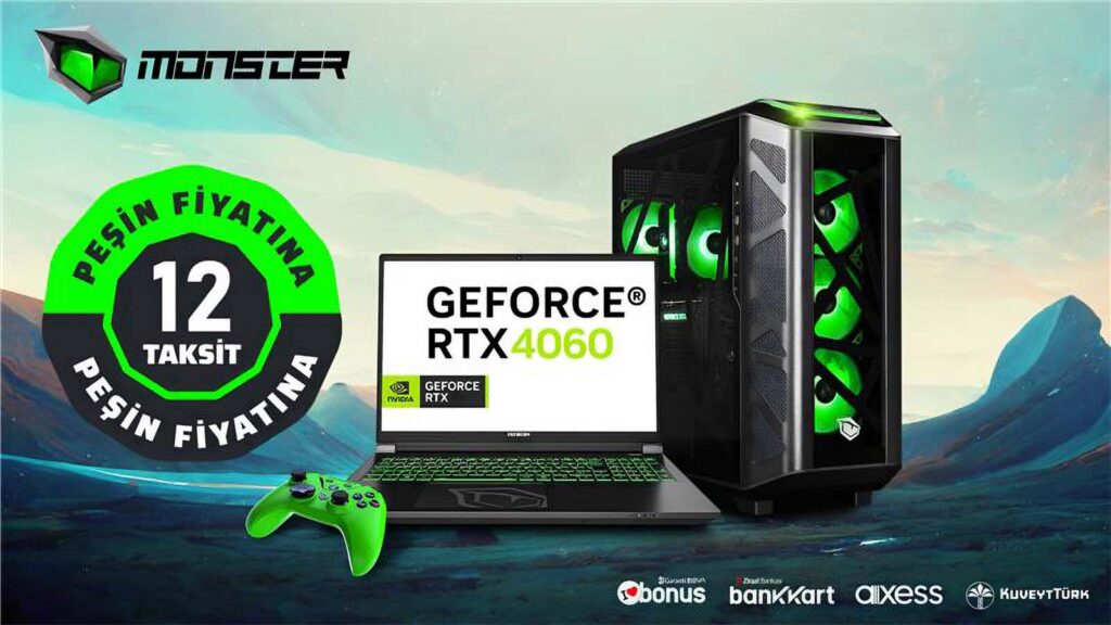 Yüksek performanslı oyun bilgisayarları ve aksesuarlarıyla kullanıcılarının vazgeçilmezi olan Monster Bilgisayar, bayrama özel kampanyasıyla teknolojiseverlere kaçırılmayacak fırsatlar sunuyor. 27 Mart – 7 Nisan tarihleri arasında geçerli kampanya kapsamında, Monster ürünlerine Garanti Bonus, Ziraat Bankkart, Axess, Wings ve Kuveyt Türk kartlarına özel peşin fiyatına 12 aya varan taksit imkanıyla sahip olabilirsiniz.