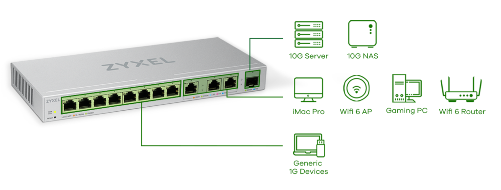 Zyxel, evden çalışan profesyoneller ve içerik üreticileri için yeni multigigabit switch’ini tanıttı. Bu switcler ağ darboğazlarını ortadan kaldırarak; WiFi 6 destekli cihazları, 10G sunucuları, yeni dizüstü ve masaüstü bilgisayarları tam hızda bağlıyor.
