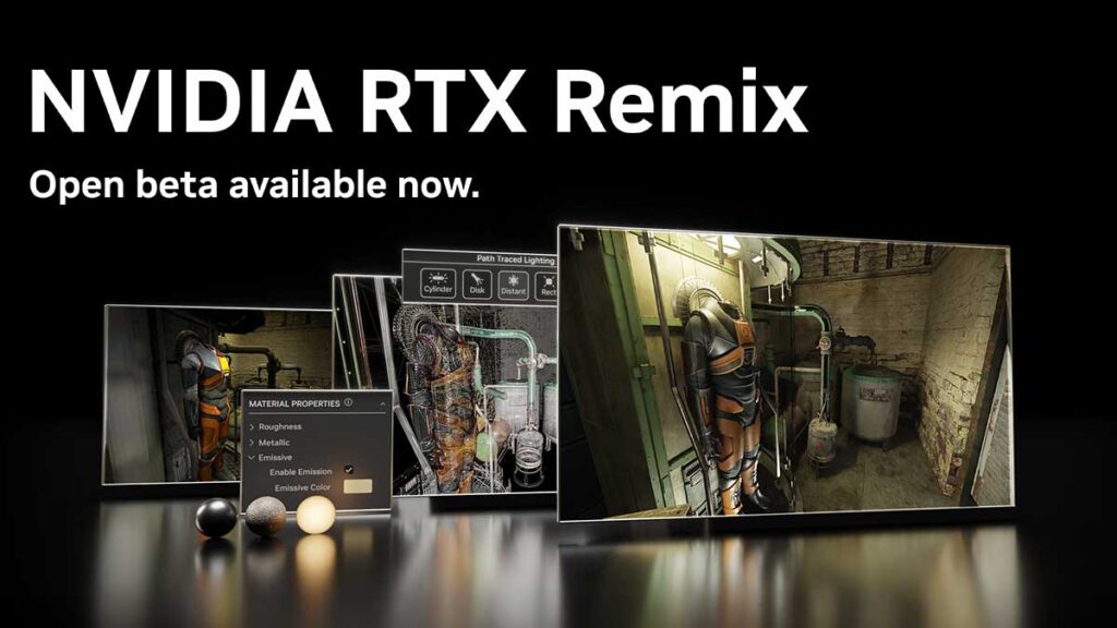 NVIDIA, NVIDIA RTX Remix ile, modderlara, favori klasik oyunlarını ışın izleme, NVIDIA DLSS, NVIDIA Reflex, modern fizik tabanlı render (PBR) varlıkları ve üretici yapay zeka dokusu araçlarıyla yeniden tasarlamalarına olanak tanıyor.